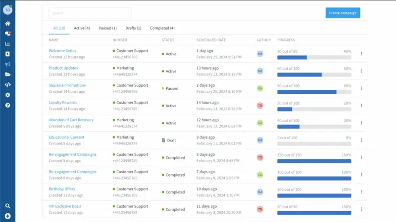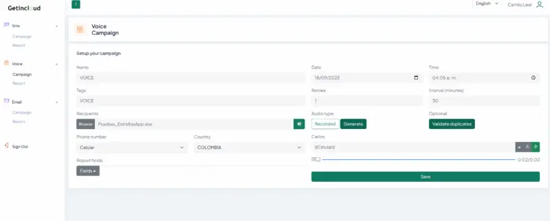 Realiza campañas de SMS, Email, WhatsApp y VOICE masivas/Transaccionales